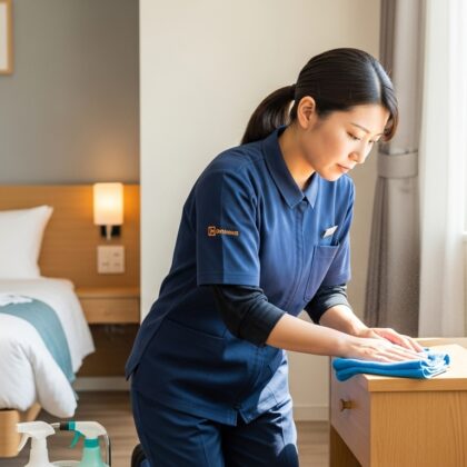 ホテルの客室清掃では、チェックアウトが午前10時、チェックインが午後3時という場合、実質的な作業時間は5時間程度しかありません。この限られた時間内で、ベッドメイキング、浴室清掃、床の掃除機がけとモップがけ、アメニティの補充、ゴミ処理など、数十もの作業を完璧にこなす必要があります。