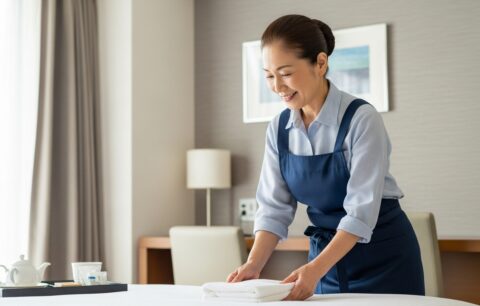 大阪のビジネスホテルでは、ビジネス客が多いため、デスク周りの清潔さや、電源コンセントの位置確認などが重要です。また、連泊客への配慮として、清掃の有無を選択できるようにする必要もあります。