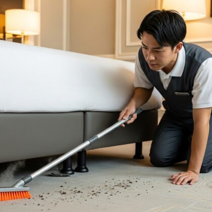 具体的には、チェックアウト後の客室で「上から下」「奥から手前」という基本動線に沿って作業を進めながら、高頻度接触部位を一つずつ除菌スプレーで拭き上げていきます。このとき、チェックリストに「どの箇所に何の薬剤を使うか」を記載しておくと、スタッフが変わっても品質を再現しやすくなります。