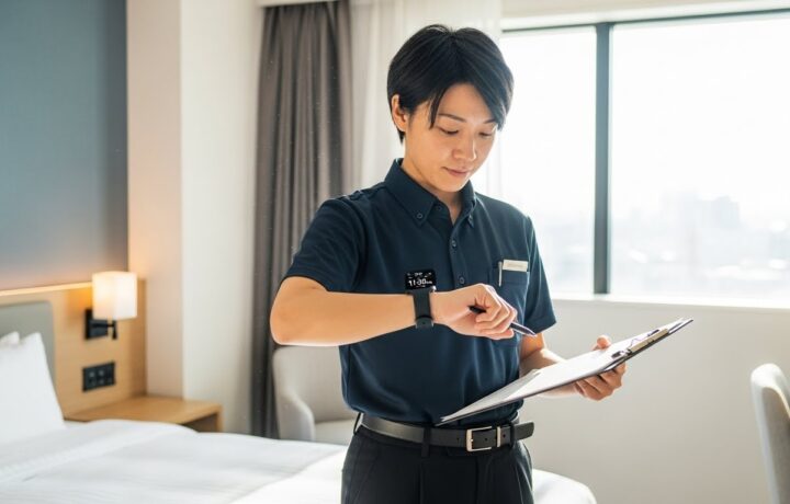 京都・大阪のホテルでは、客室数が多いシティホテルやビジネスホテルで、繁忙期に1人あたり20室以上を担当するケースも珍しくありません。動線が整理されていないと、スタッフは「急ぐほどミスが増える」悪循環に陥ります。