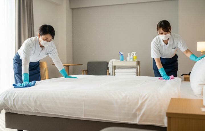 民泊・ホテル運営の人手不足は、清掃会社の代行を活用することで「採用コスト削減」「品質安定」「クレーム削減」を同時に解決できます。